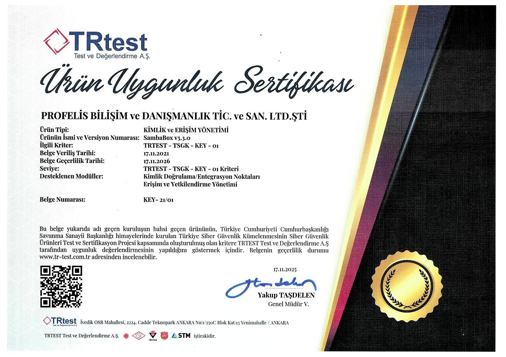 Profelis’in, SambaBox ürününün 5.3 versiyonu TRtest tarafından test edilerek sertifikalandırılmıştır.